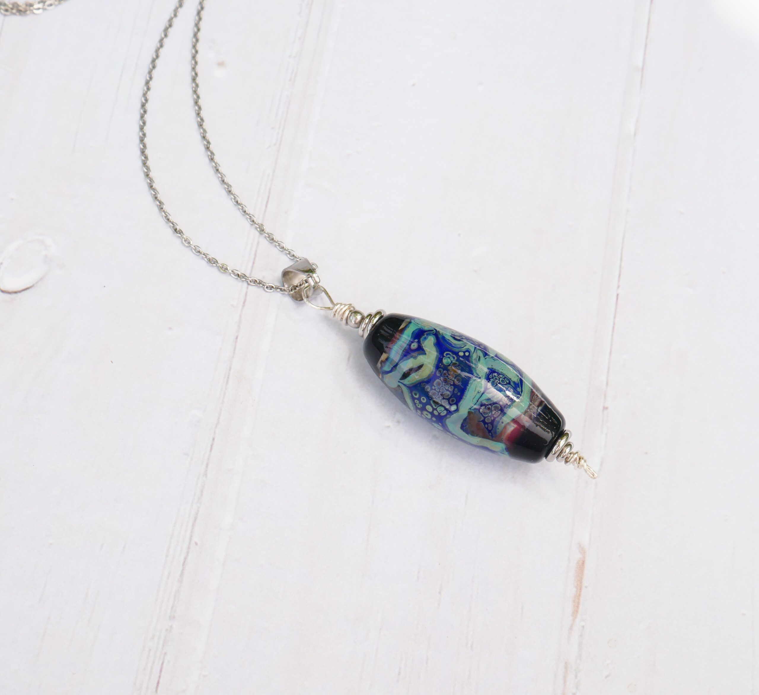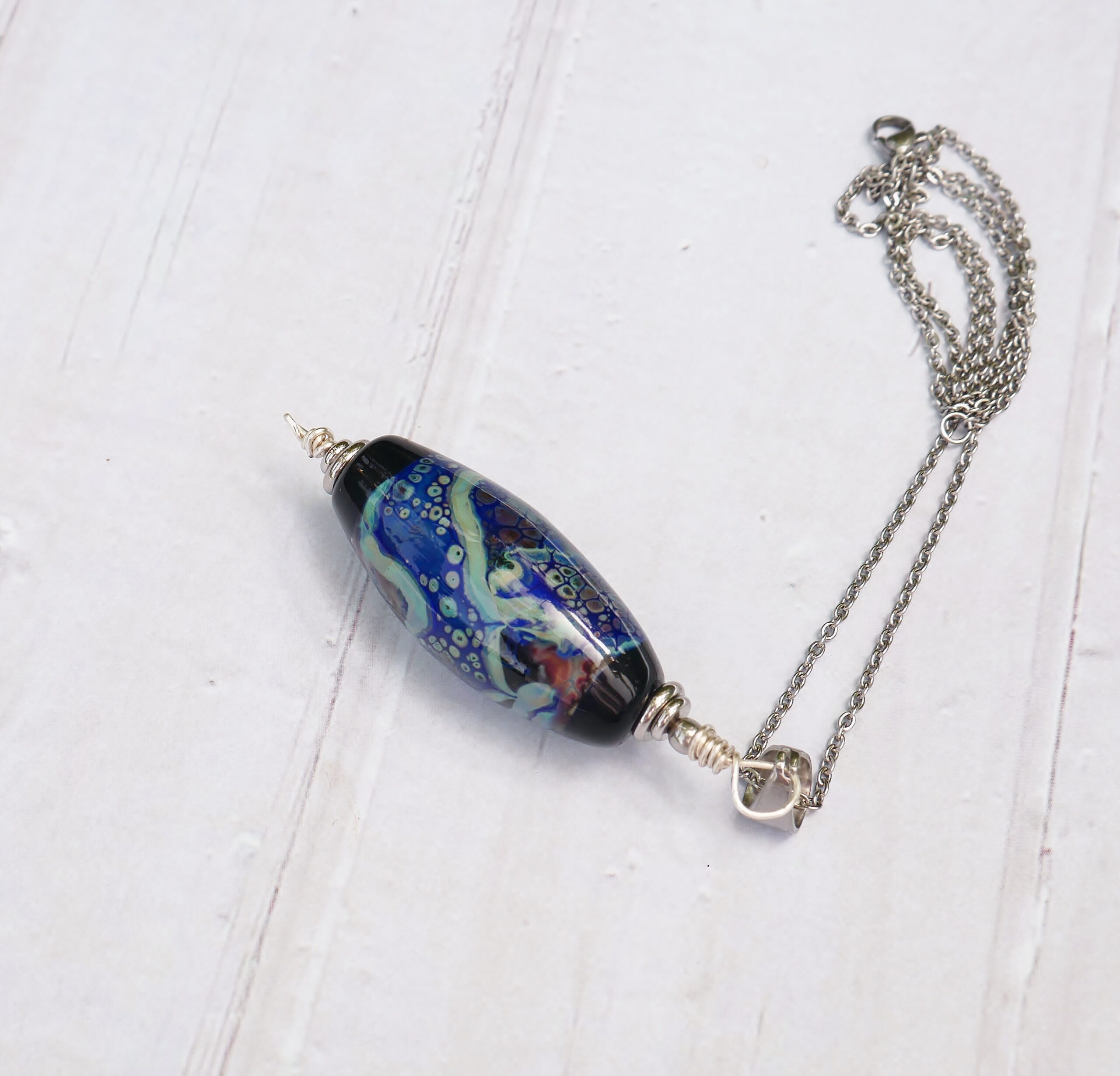 Voici un joli collier avec sa perle ovale allongée et ses effets craquelés, un effet de vagues et de mer qui bouge !