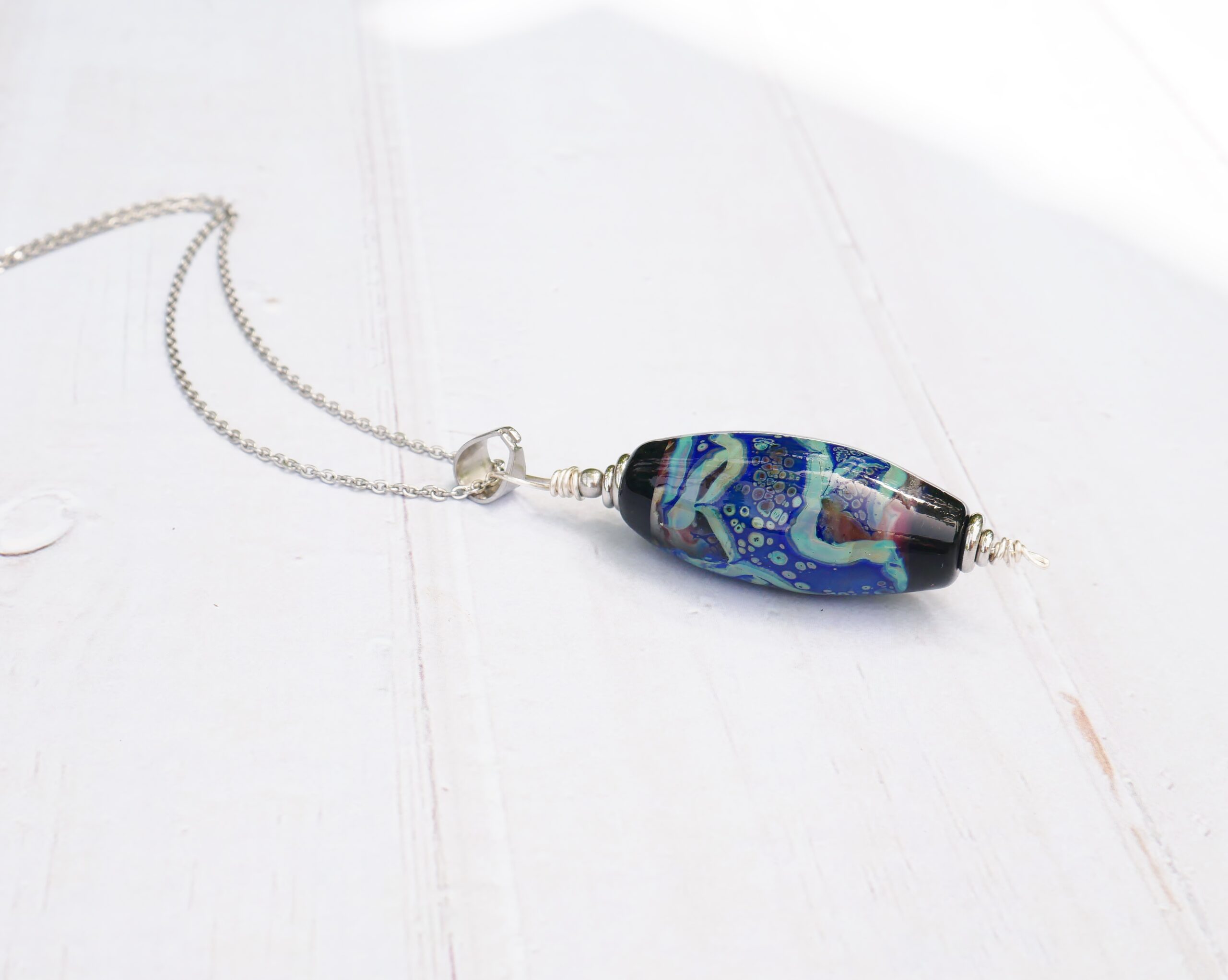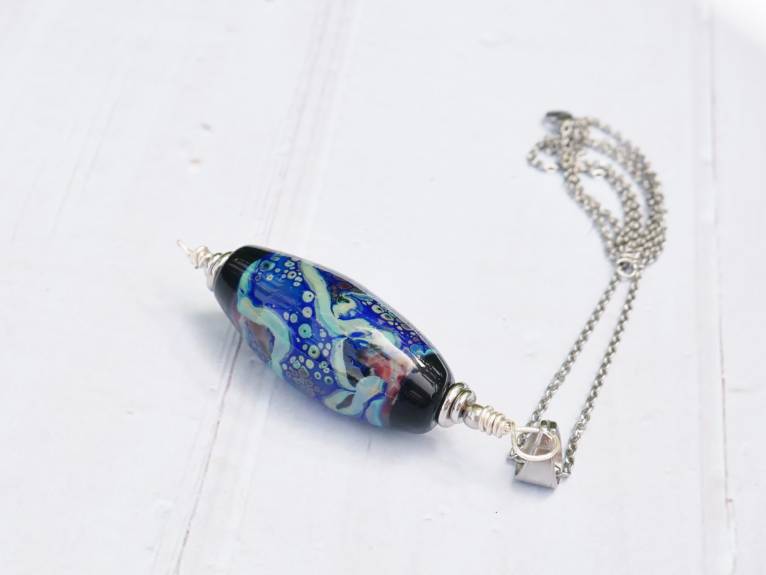 Les perles sont filées dans la flamme de mon chalumeau puis recuites au four professionnel pour lui assurer solidité et longévité.