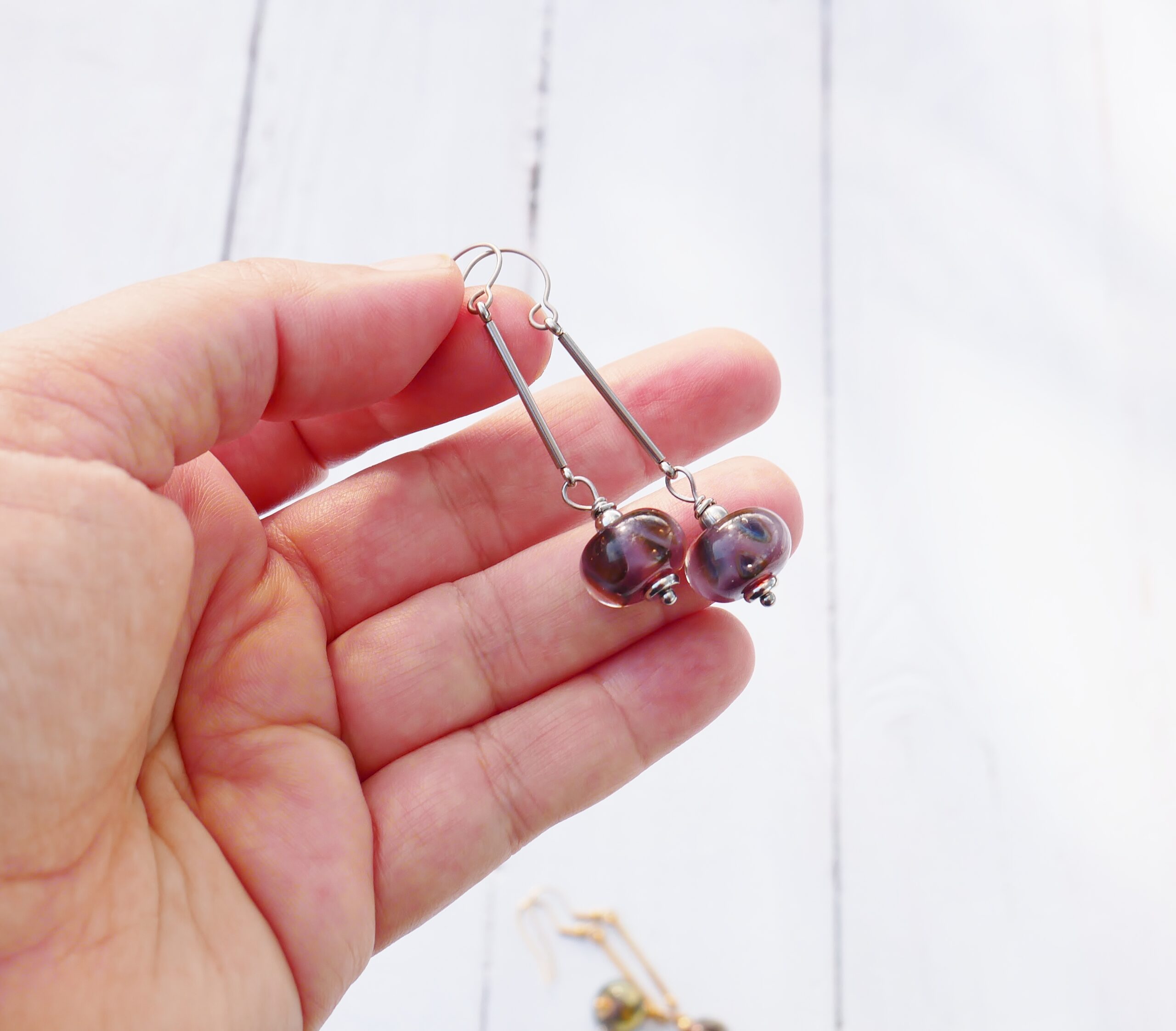 Les bijoux sont montés avec soin avec des apprêts de qualité, j’utilise essentiellement de l’acier inoxydable et de l’argent 925.