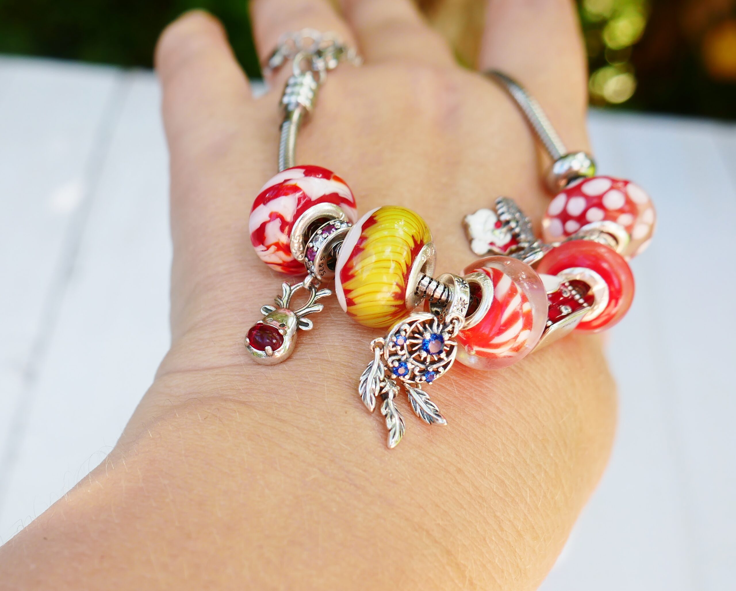 Les perles sont filées dans la flamme de mon chalumeau puis recuites au four professionnel pour lui assurer solidité et longévité.