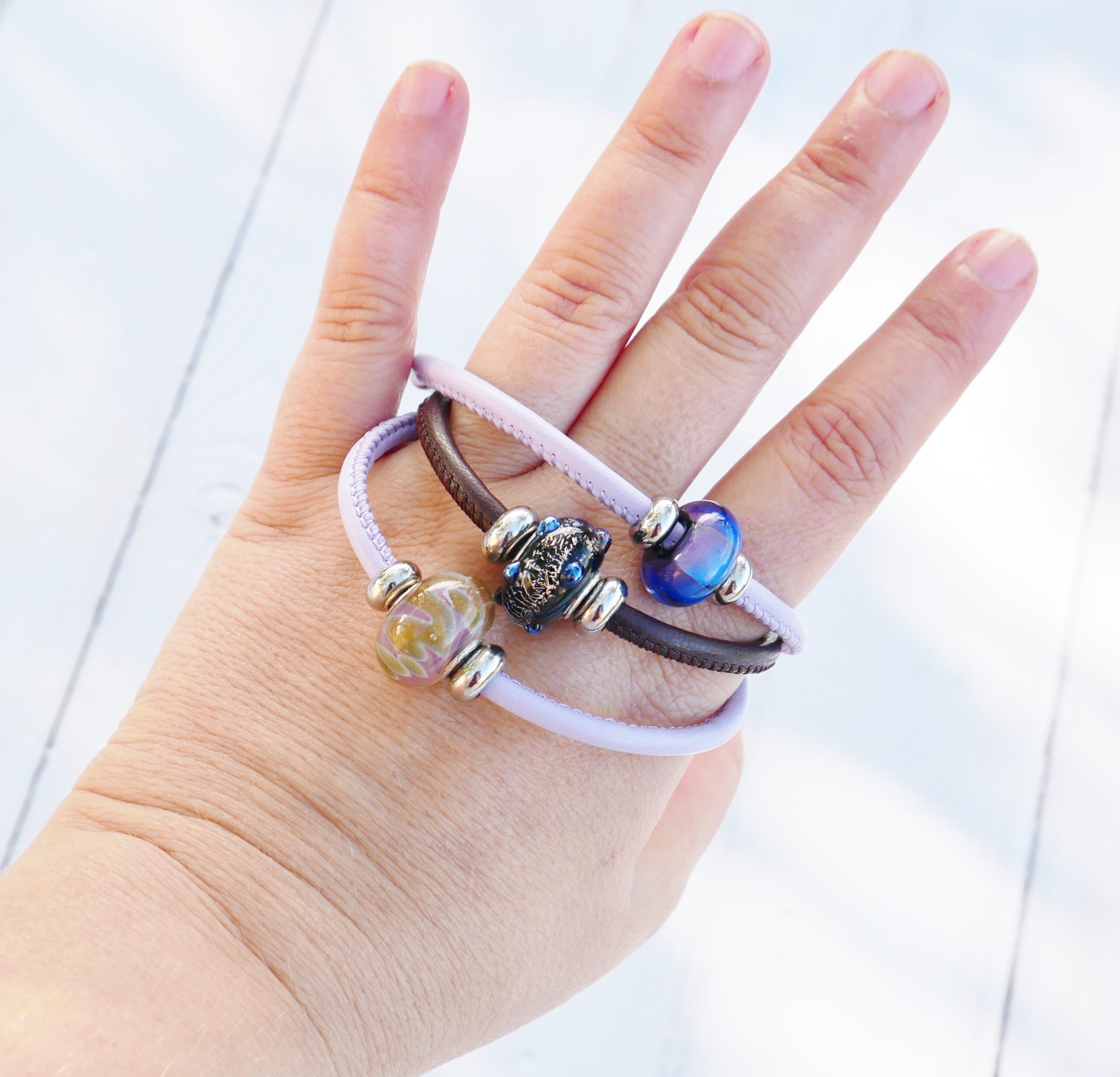 Les perles sont filées dans la flamme de mon chalumeau puis recuites au four professionnel pour lui assurer solidité et longévité.