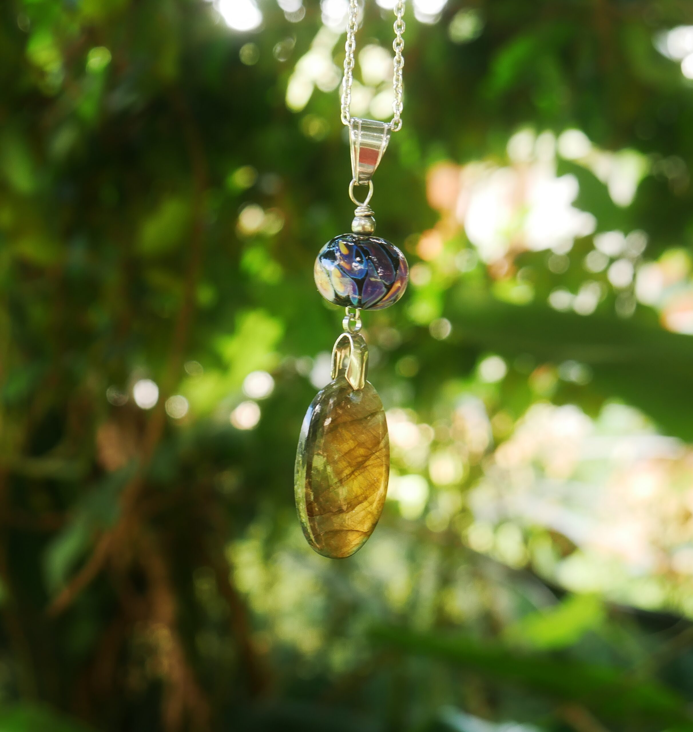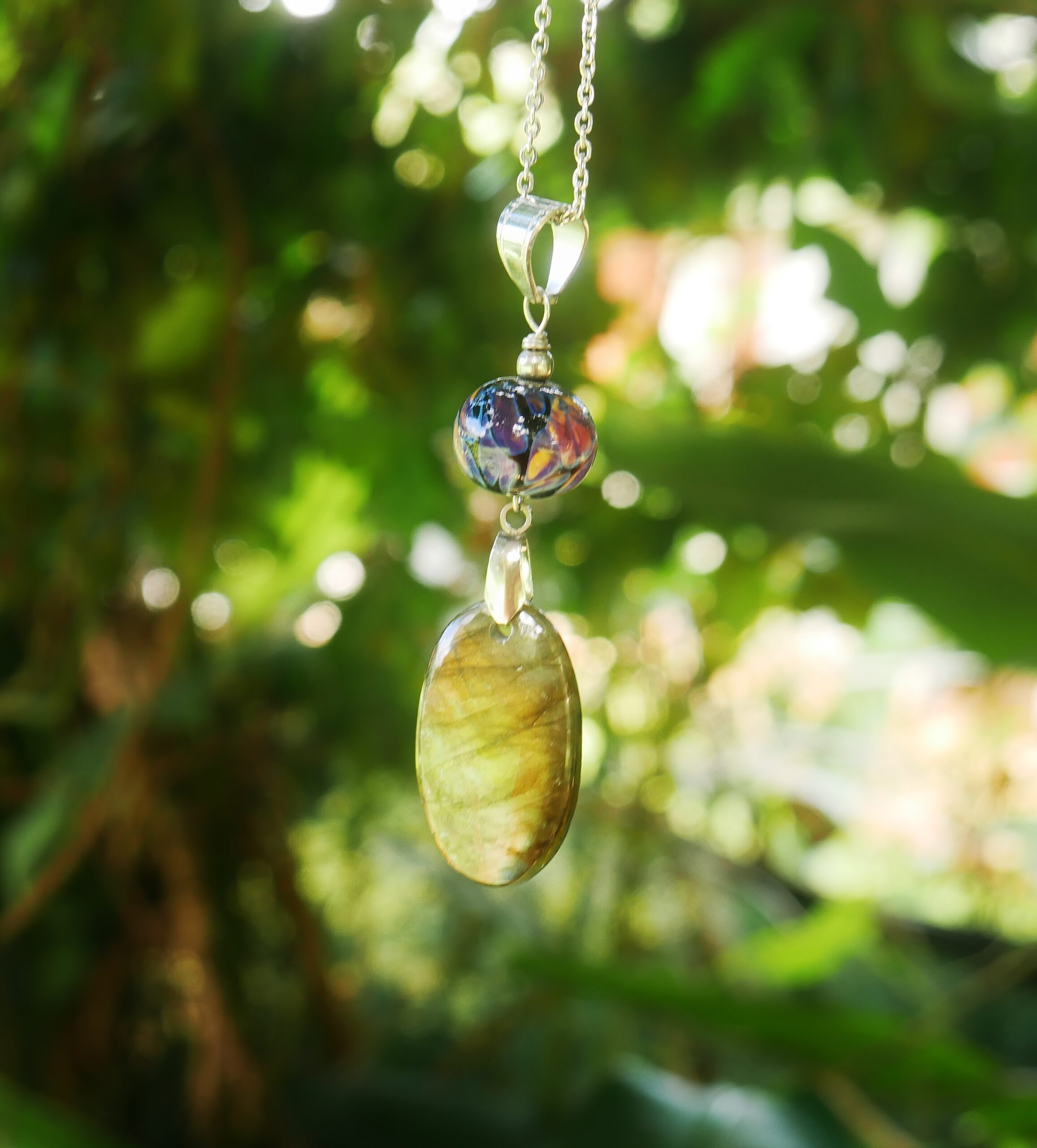 Bijou unique, les perles sont filées dans la flamme de mon chalumeau puis recuites au four professionnel pour lui assurer solidité et longévité.
