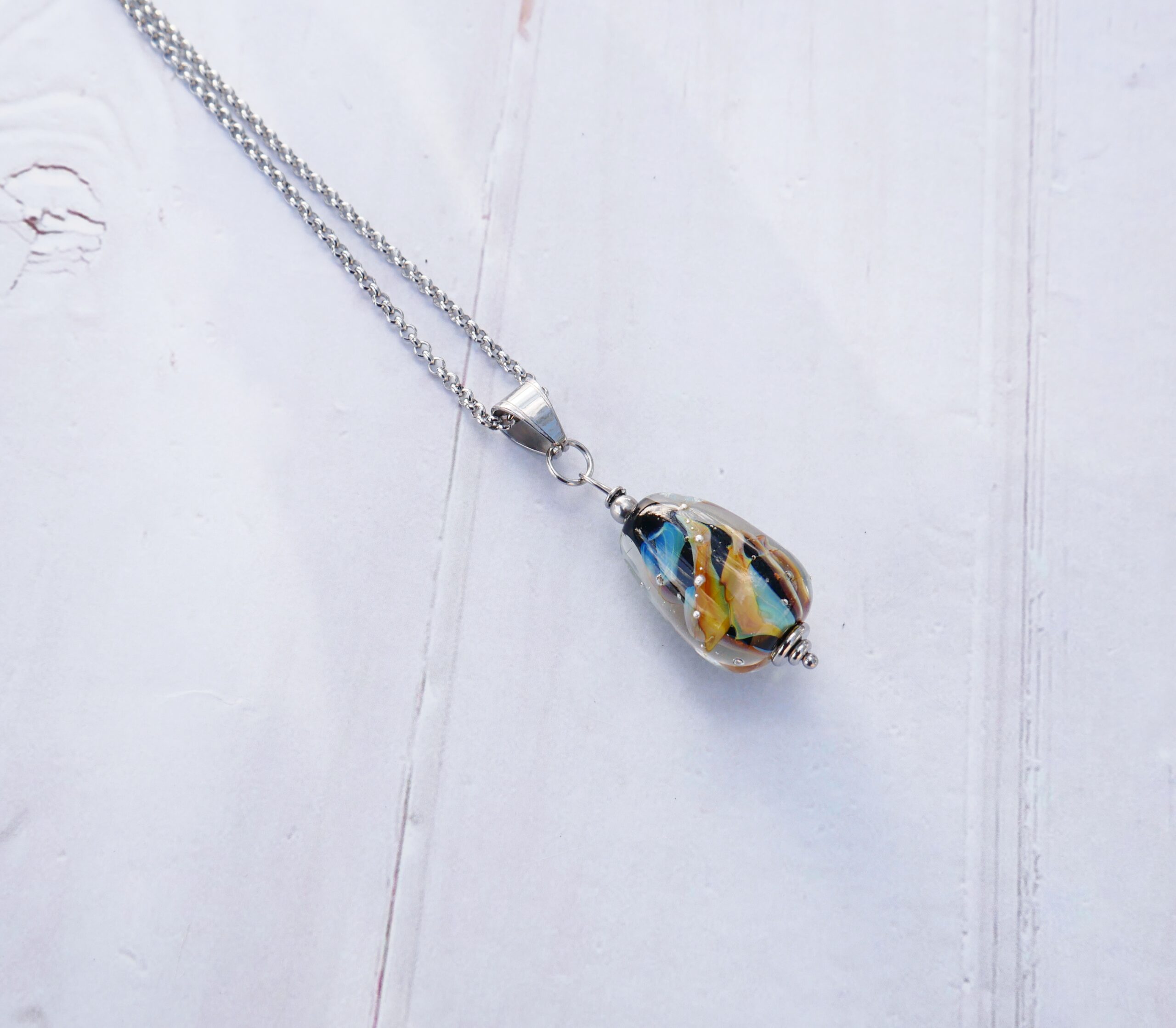 Le verre de Murano est un matériau noble. Il est longuement filé à la flamme du chalumeau puis recuit au four professionnel pendant de nombreuses heures afin de lui garantir solidité et longévité.