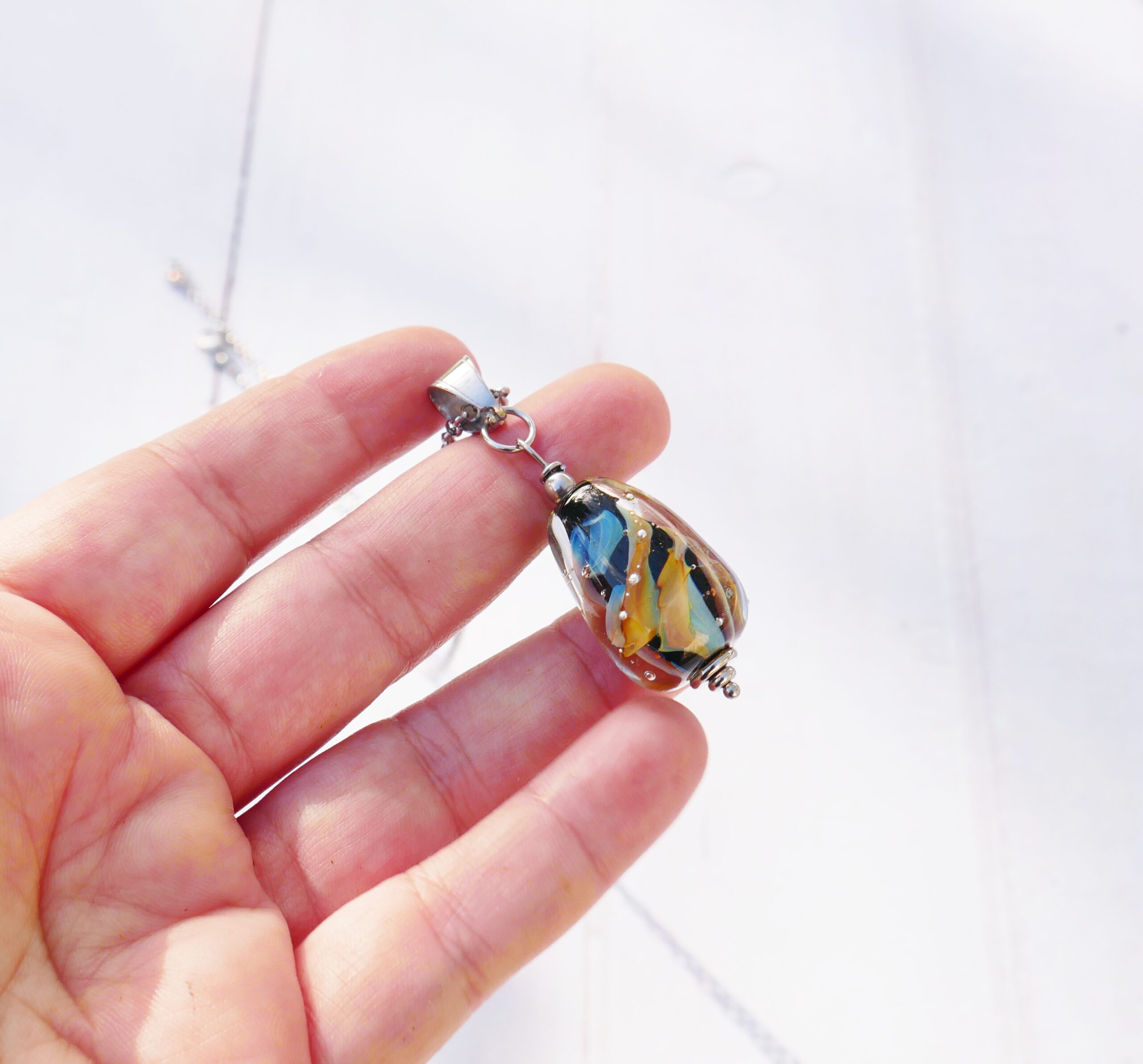 Collier un peu abstrait, avec un effet de vagues… Je le vois comme les fonds marins, mais chacun y verra ce qu’il veut ♥