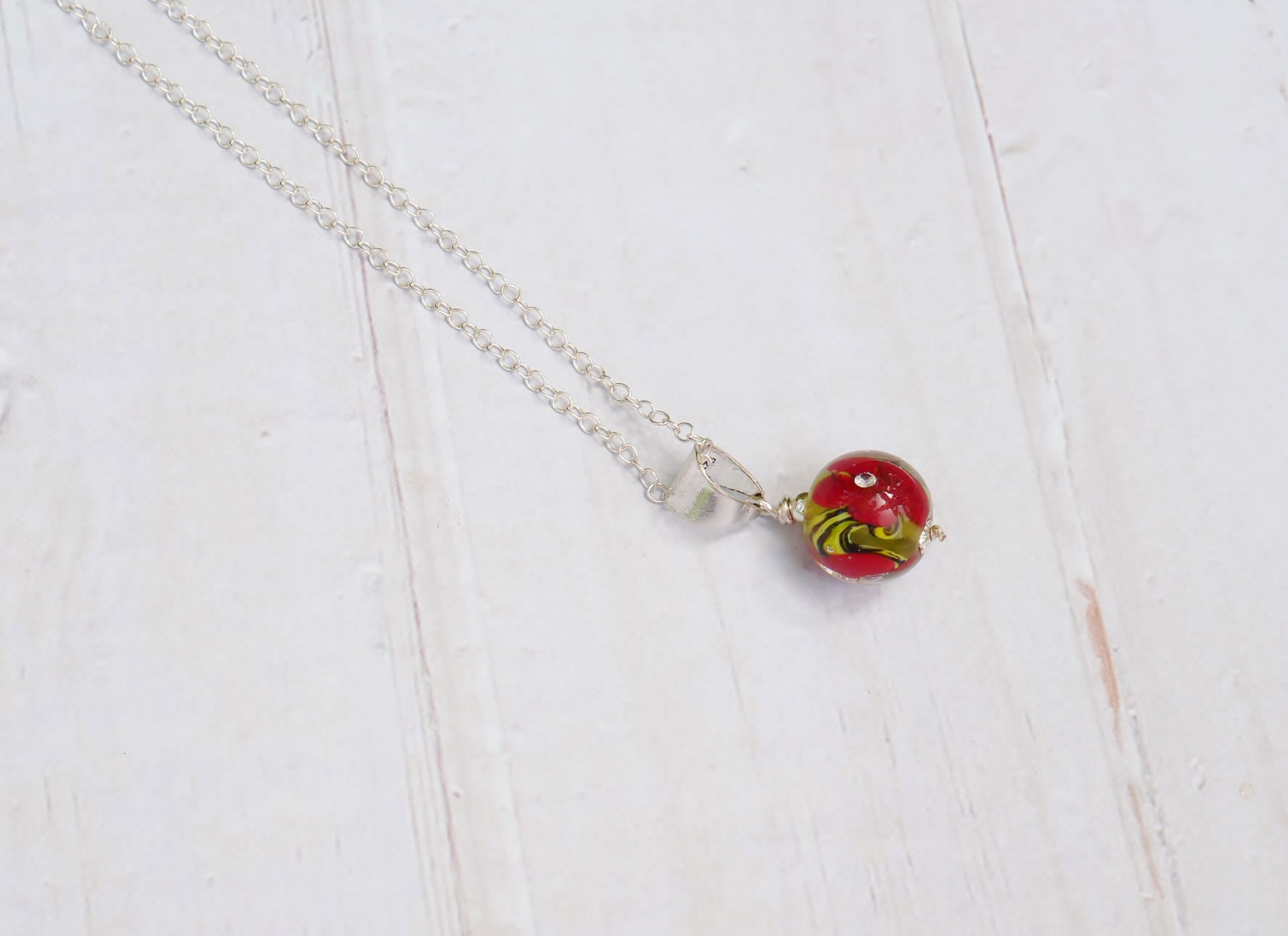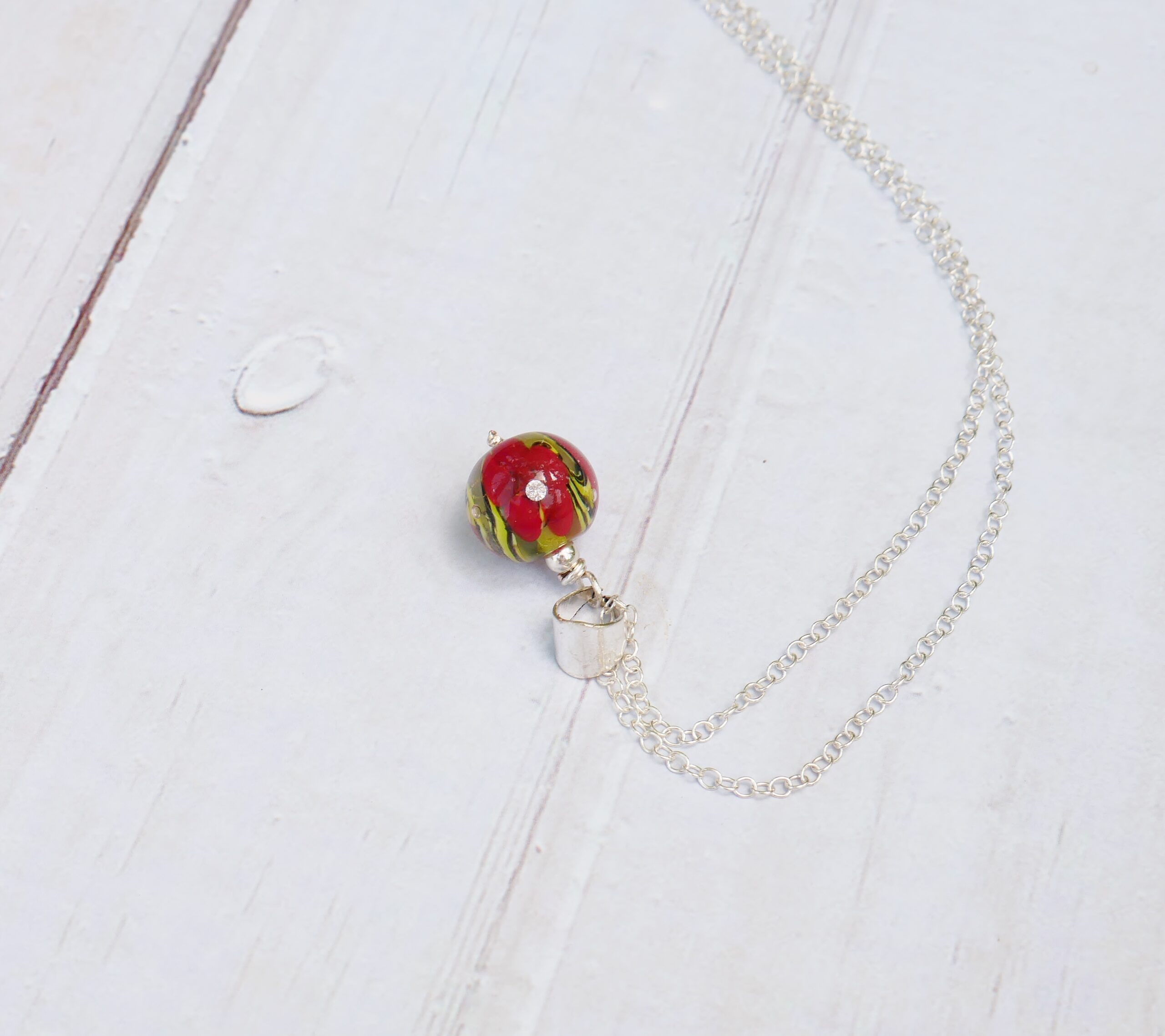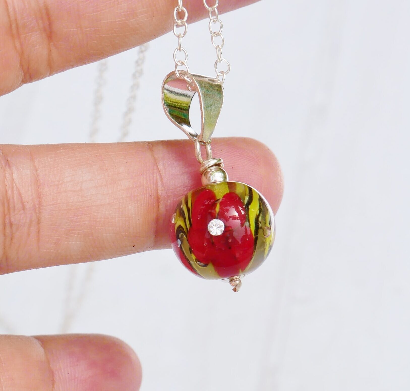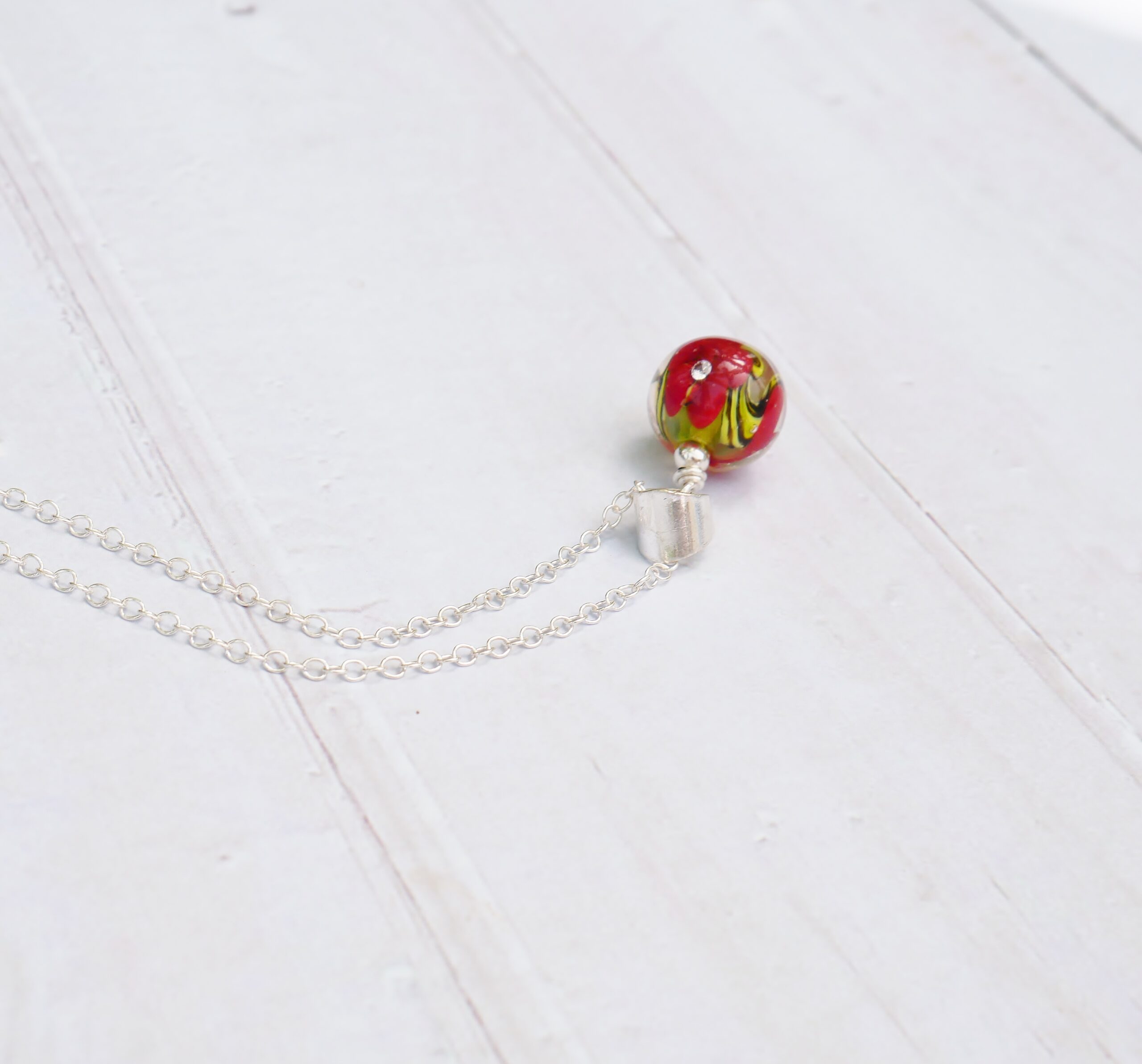Les perles sont filées dans la flamme de mon chalumeau puis recuites au four professionnel pour lui assurer solidité et longévité.
