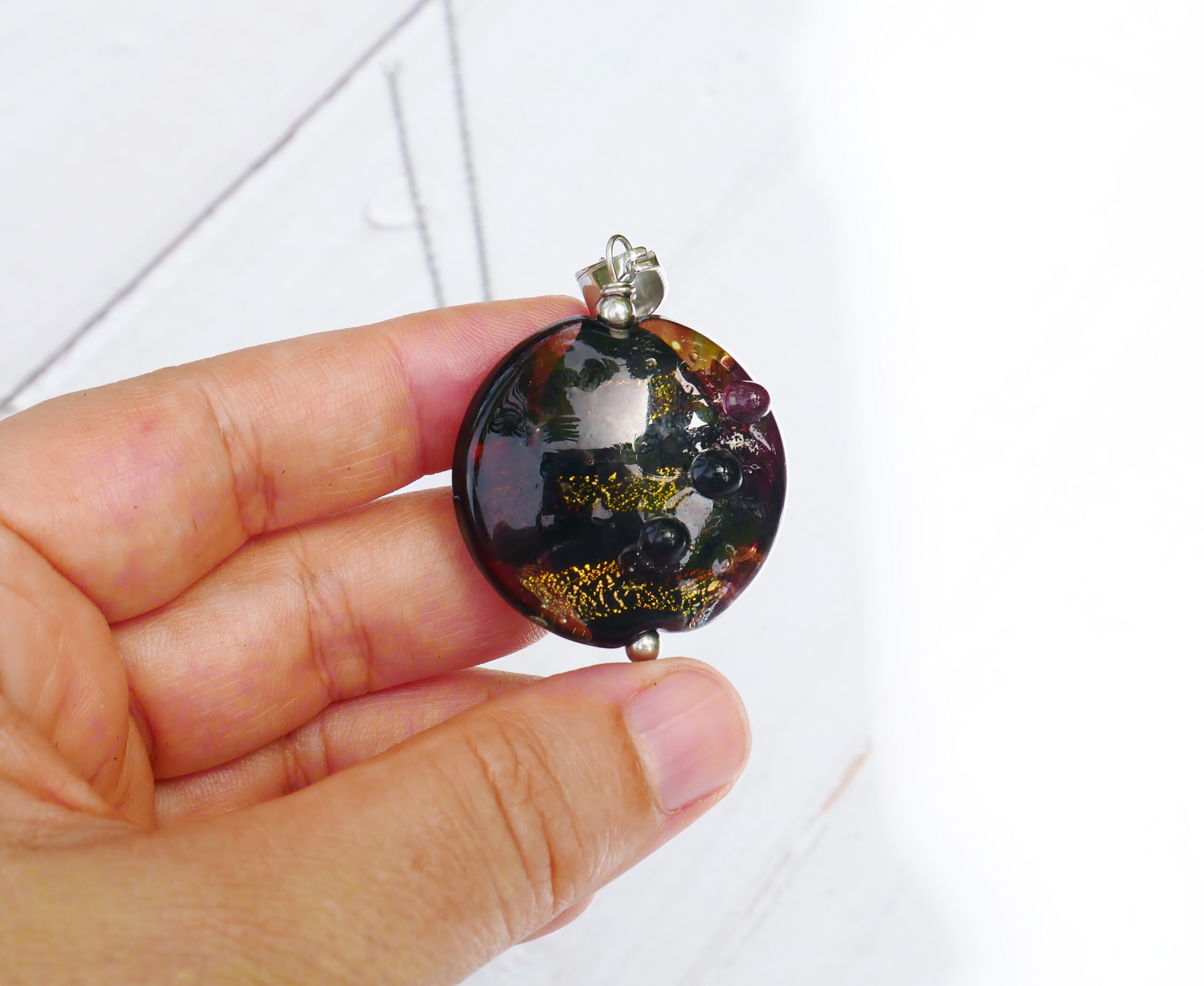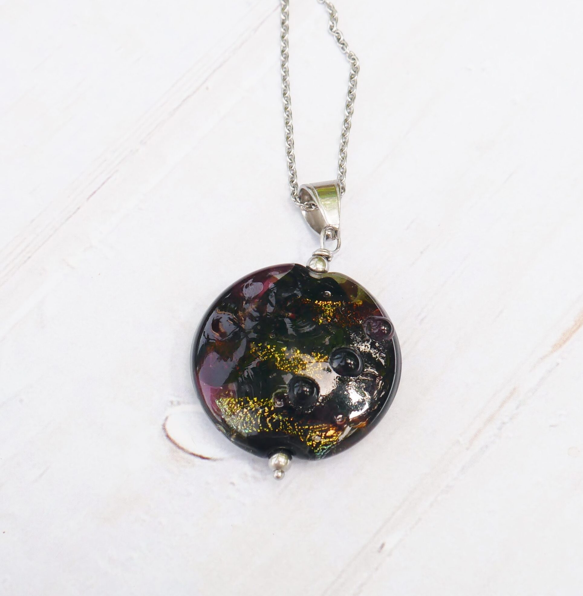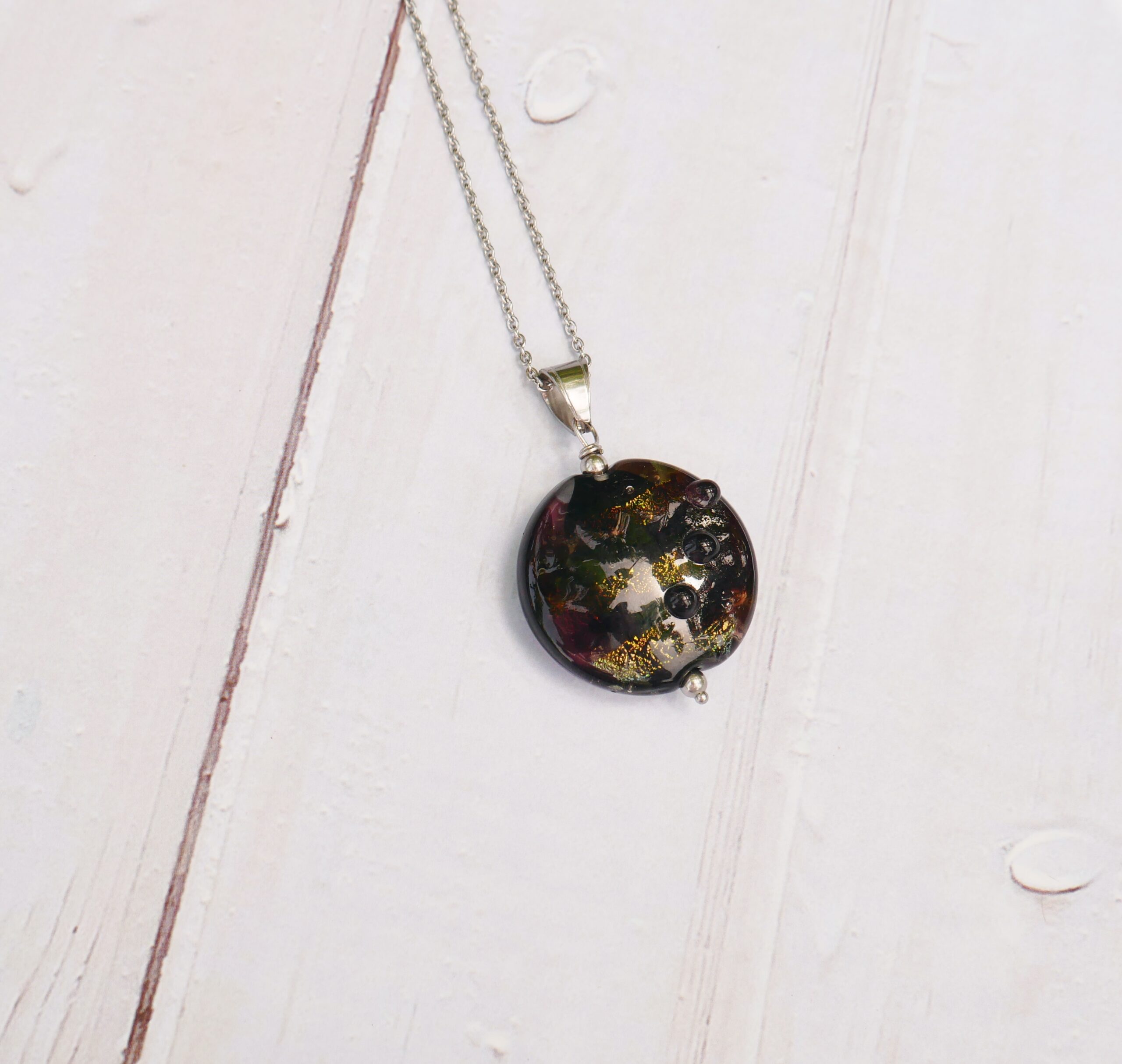 Un collier tout en élégance et en sobriété avec cette perle noire et son verre irisé.