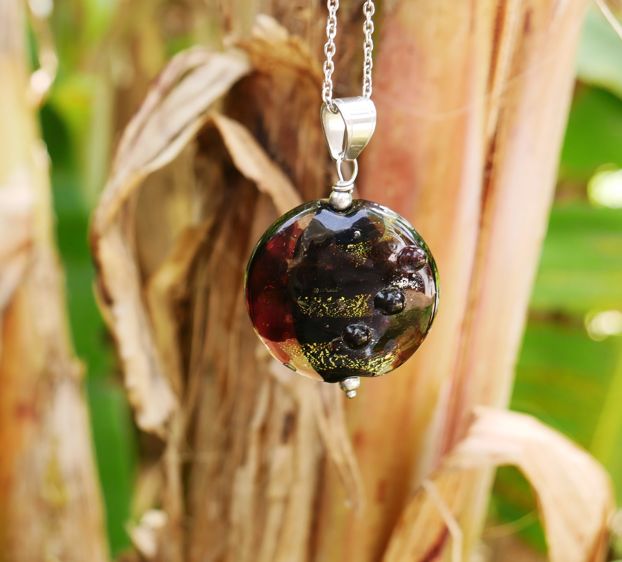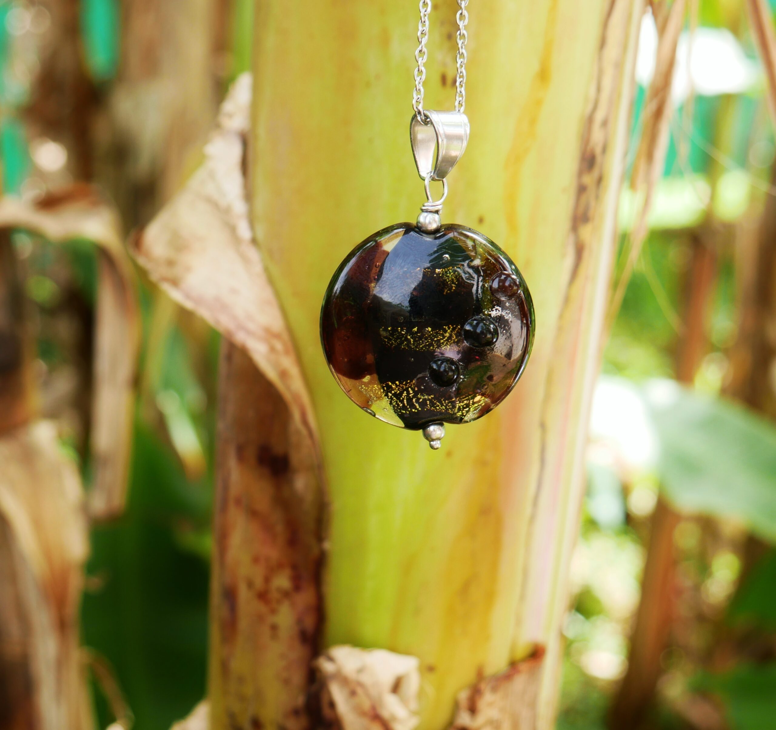 Les perles sont filées dans la flamme de mon chalumeau puis recuites au four professionnel pour lui assurer solidité et longévité.