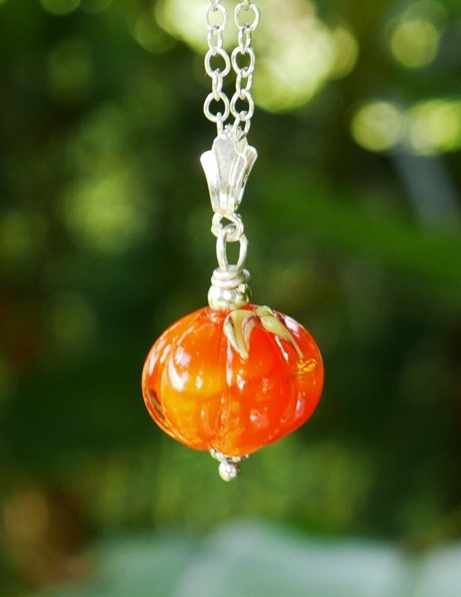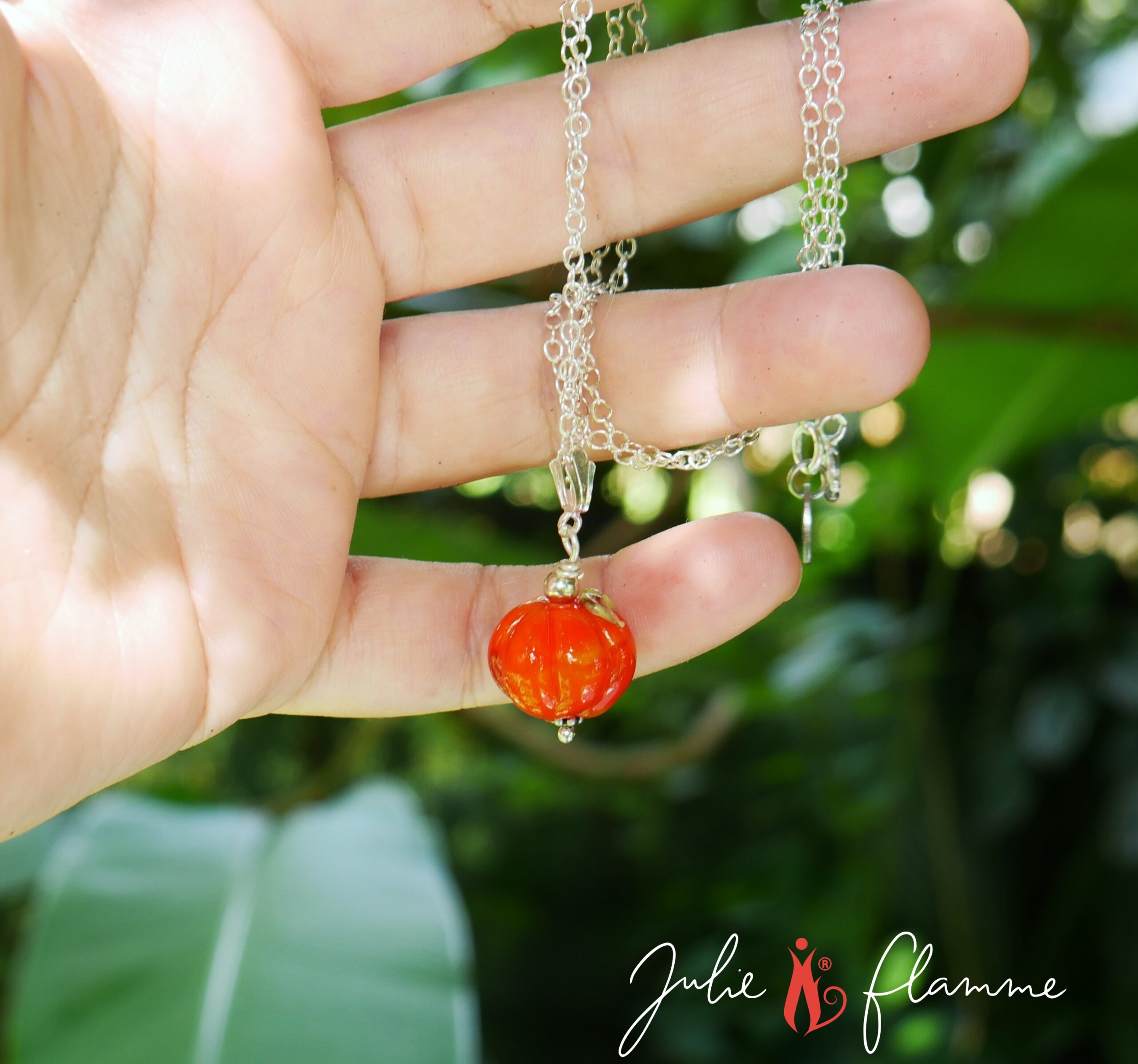Un joli collier citrouille avec chaine et montages en Argent 925