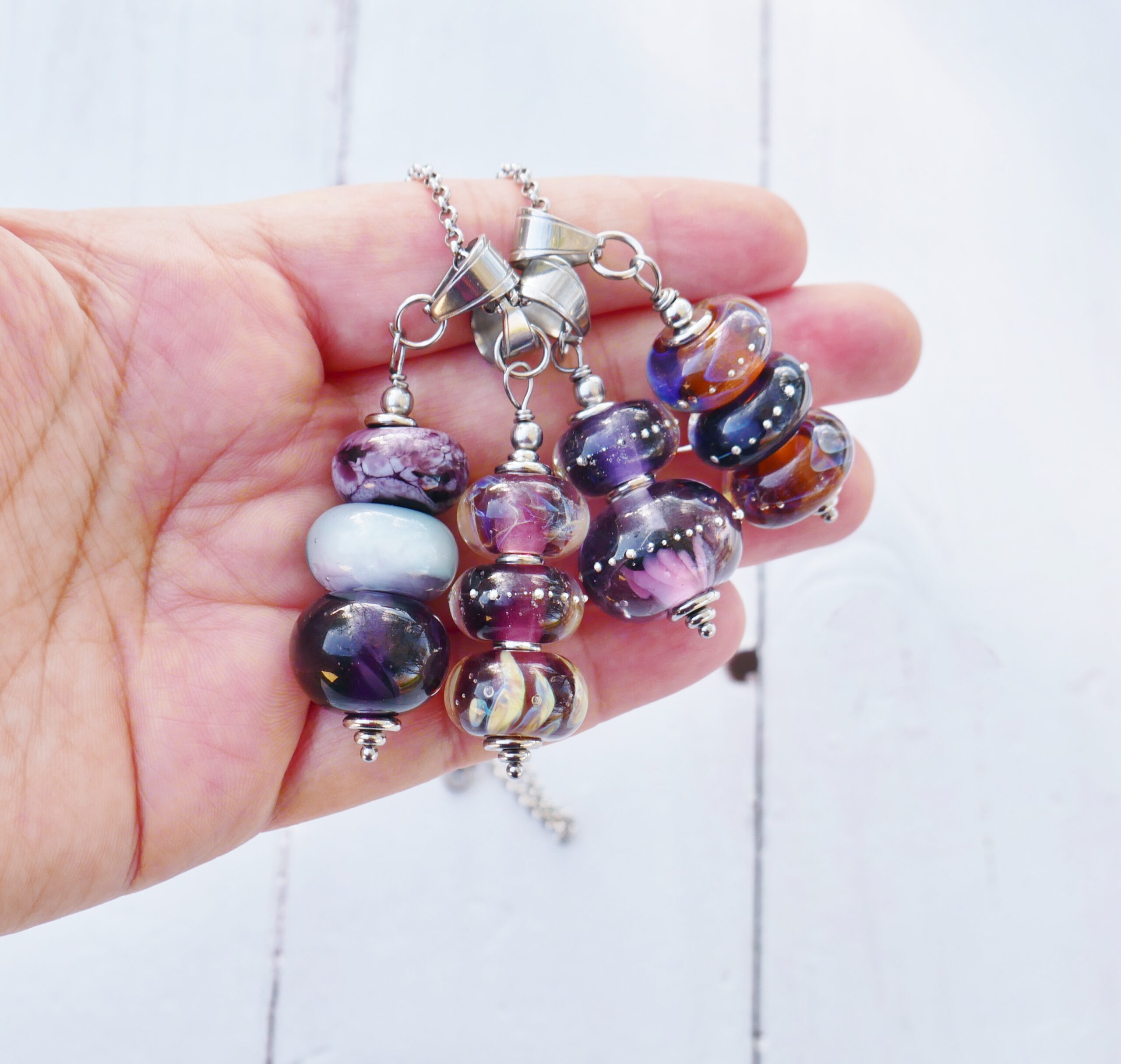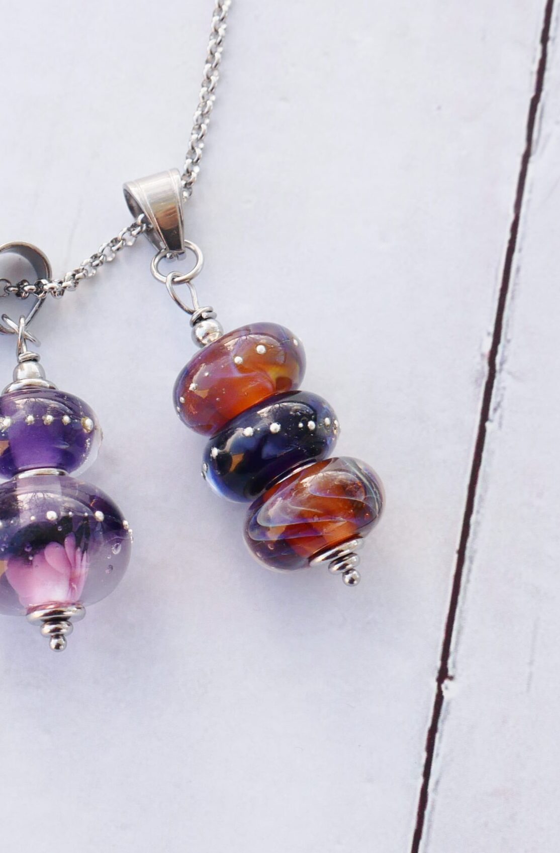 3 perles dans des tons ambrés et violets
