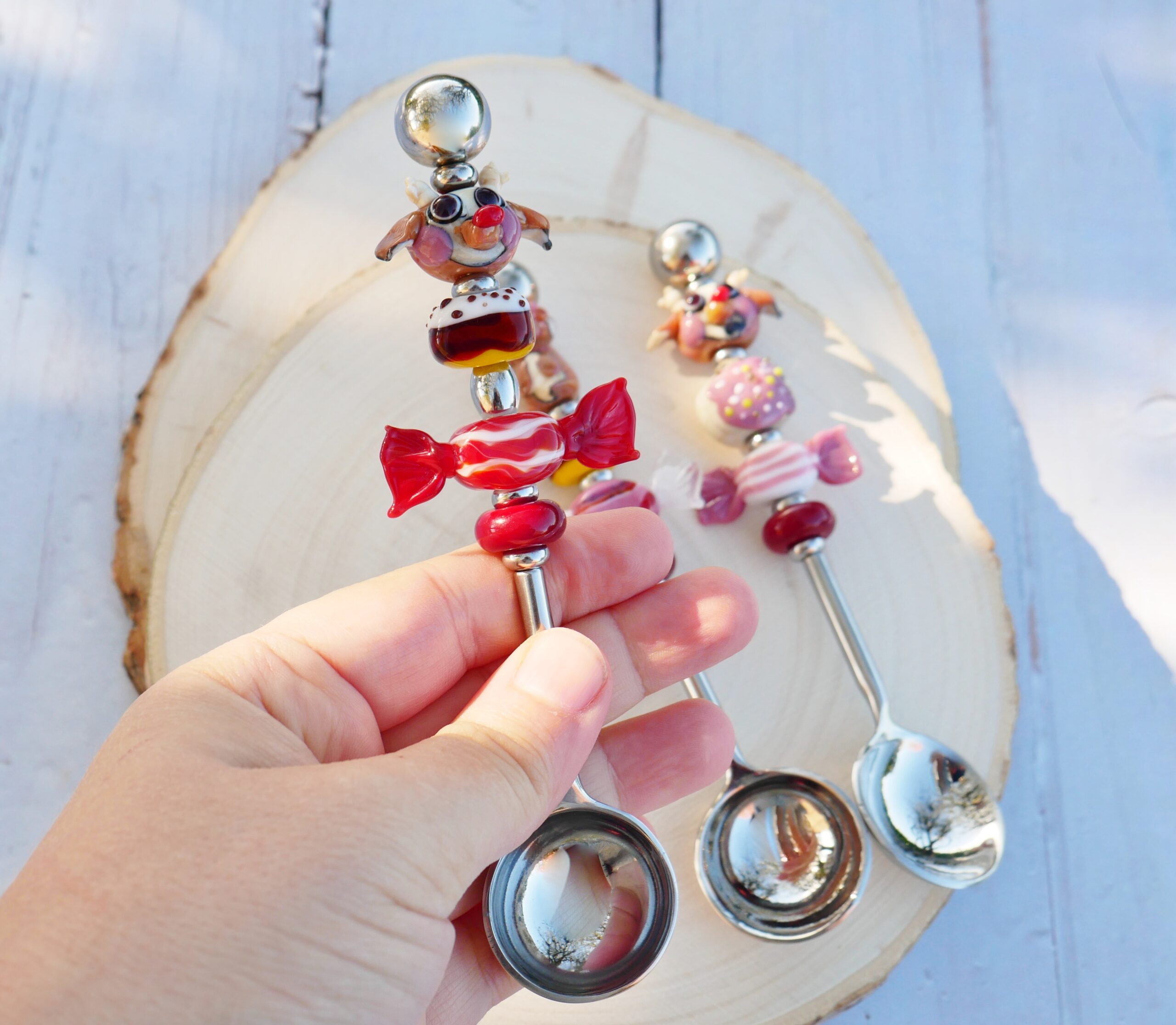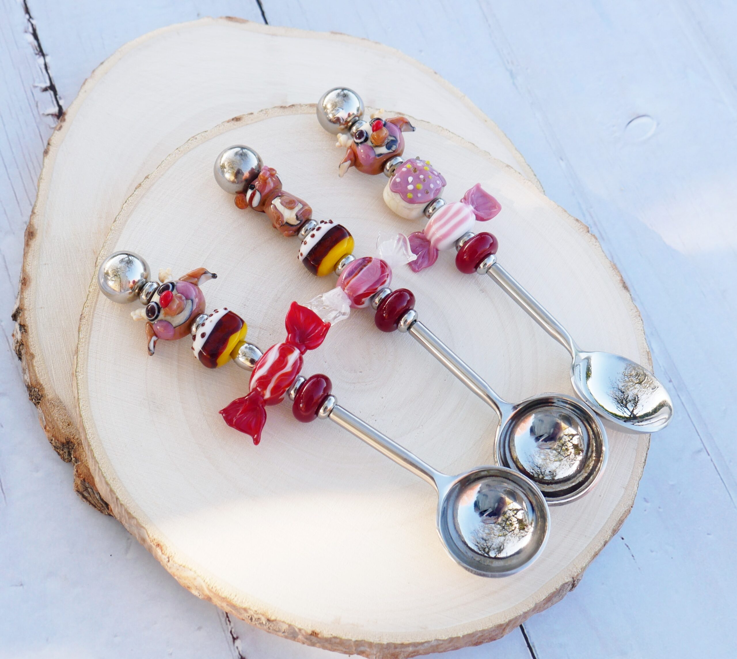 Cuillère à sucre petit renne, en acier inoxydable alimentaire, avec perles bonbon et petit gâteau
