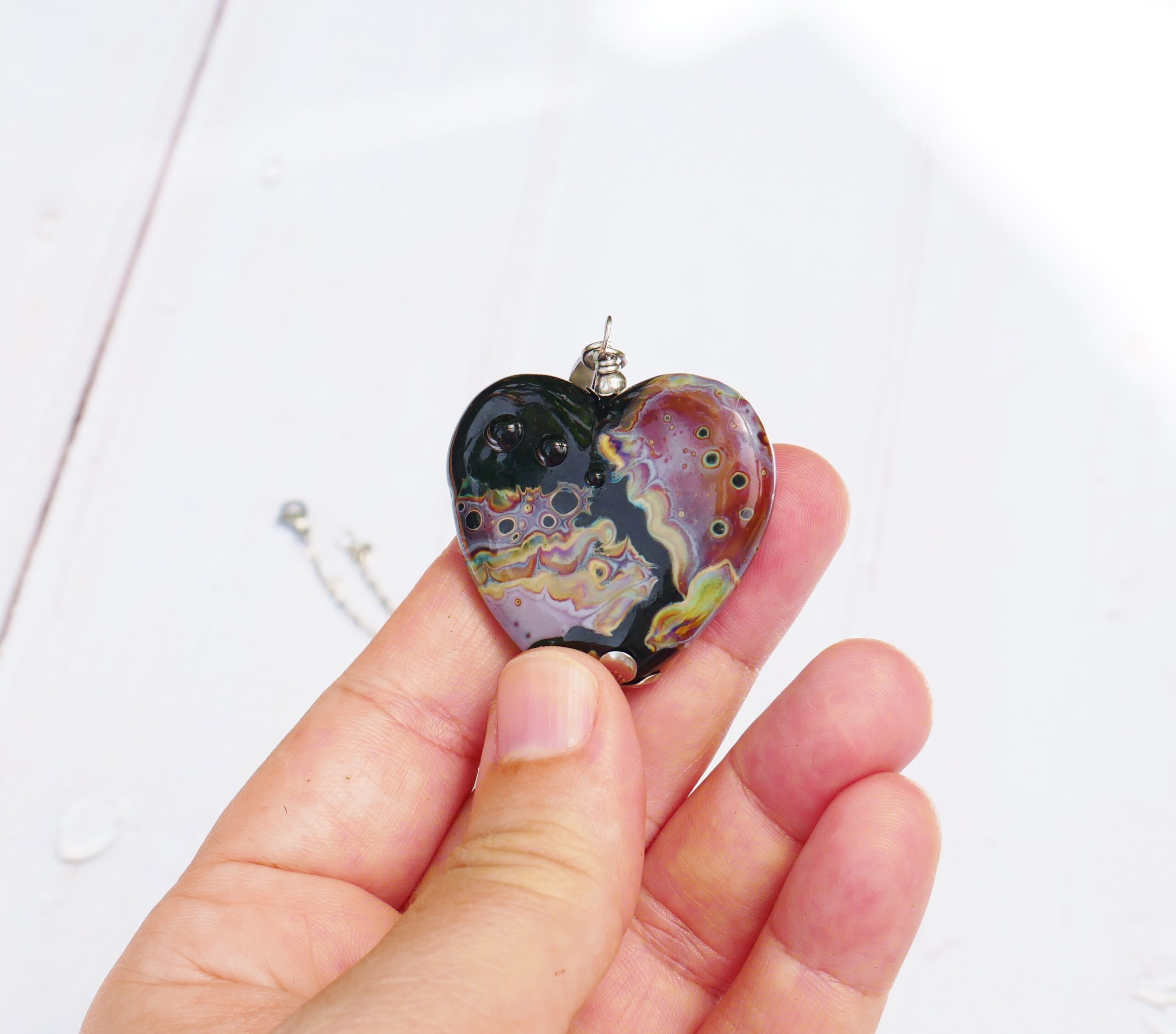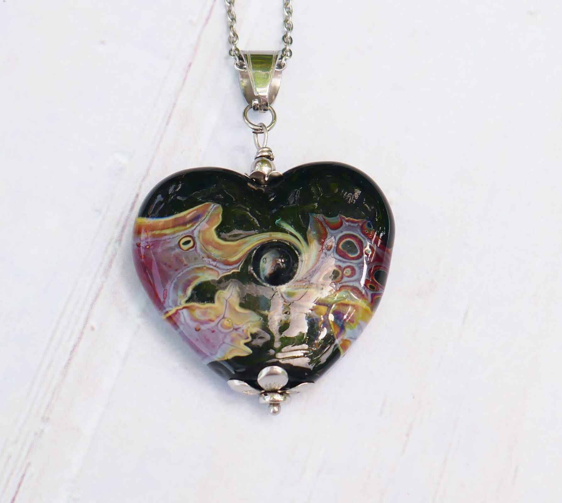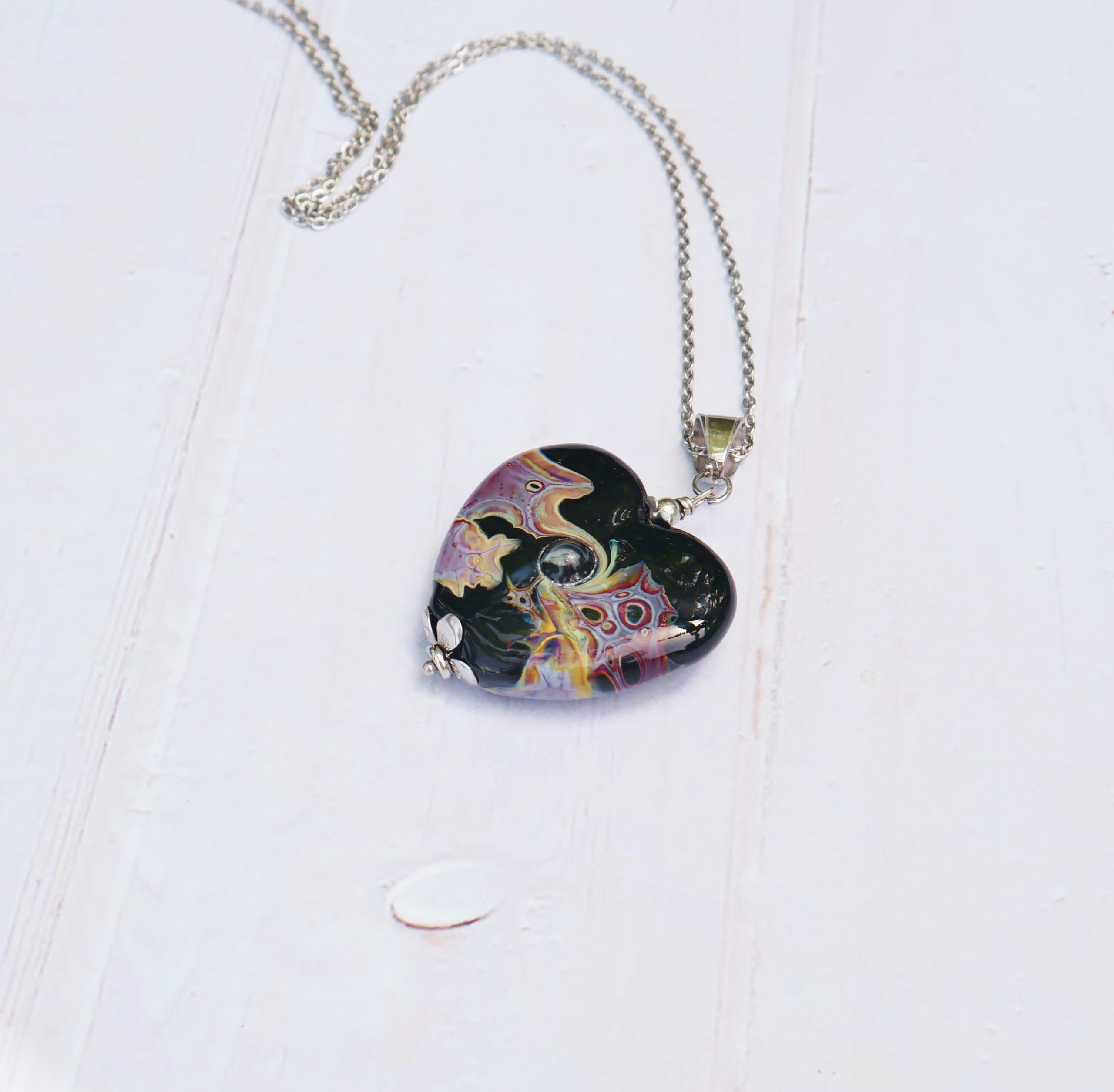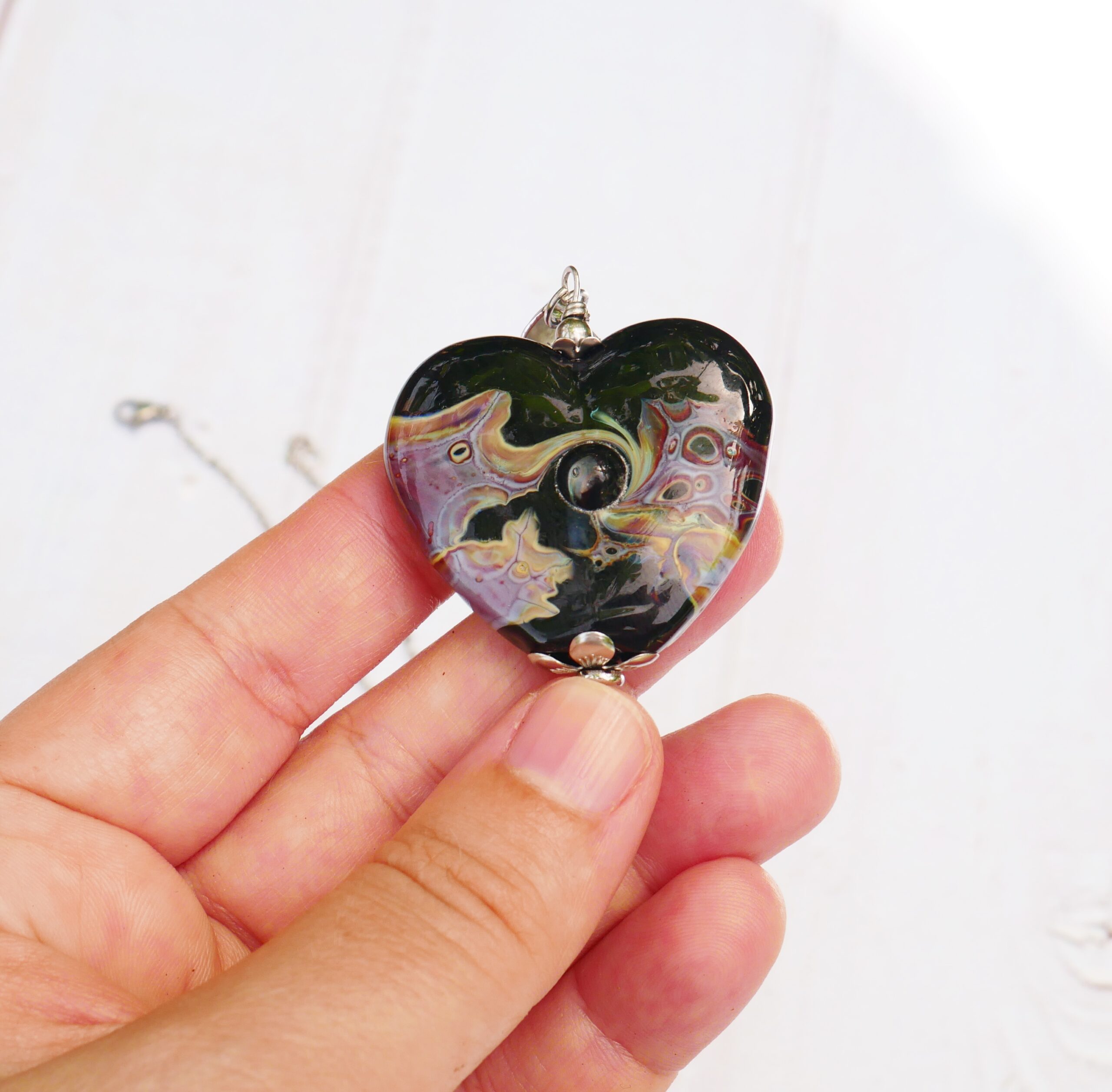 Les perles sont filées dans la flamme de mon chalumeau puis recuites au four professionnel pour lui assurer solidité et longévité.