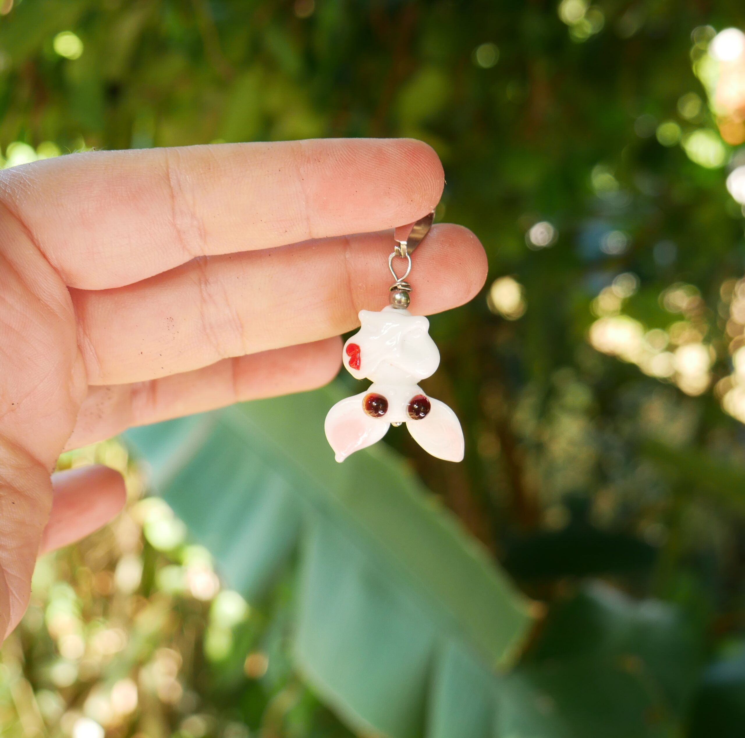 Bijoux uniques, les perles ont été longuement filées et travaillées dans la flamme de mon chalumeau puis recuite au four professionnel pour lui assurer solidité et longévité.