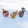 Le verre de Murano est un matériau noble. Il est longuement filé à la flamme du chalumeau puis recuit au four professionnel pendant de nombreuses heures afin de lui garantir solidité et longévité.