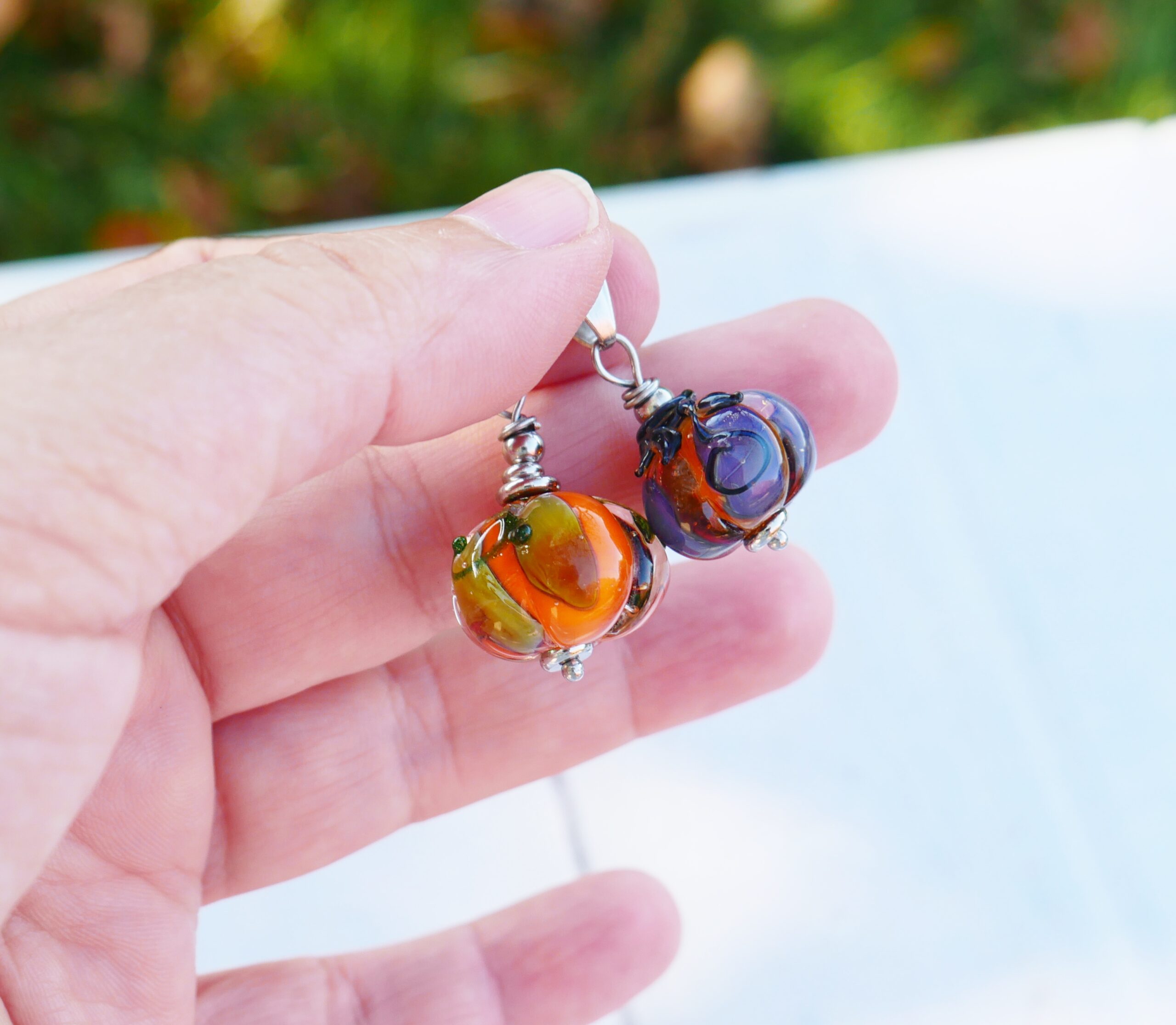 Pendentifs citrouilles magiques, citrouille orange (à droite sur la photo)