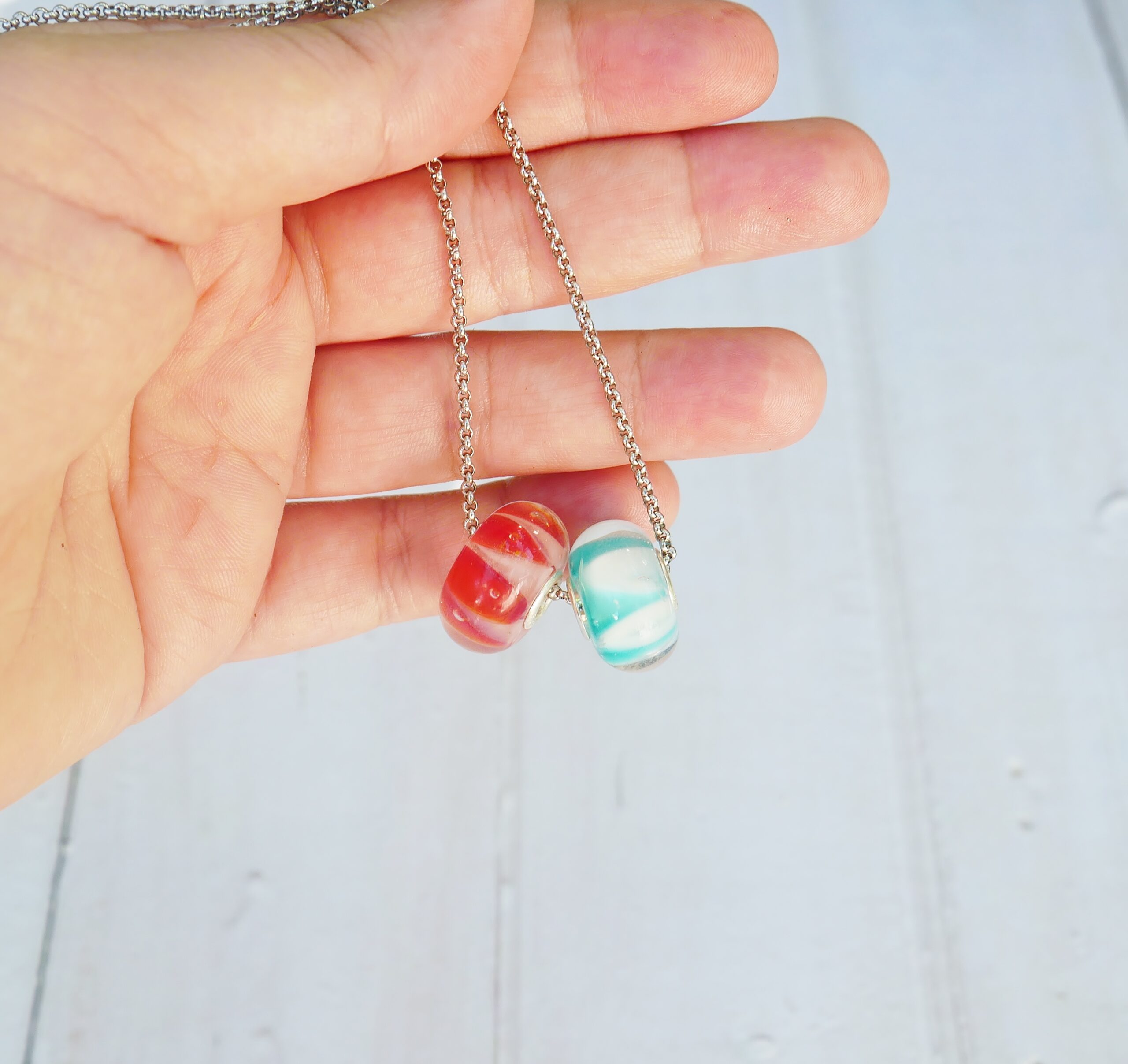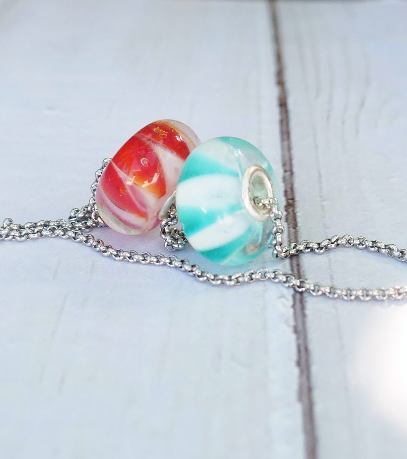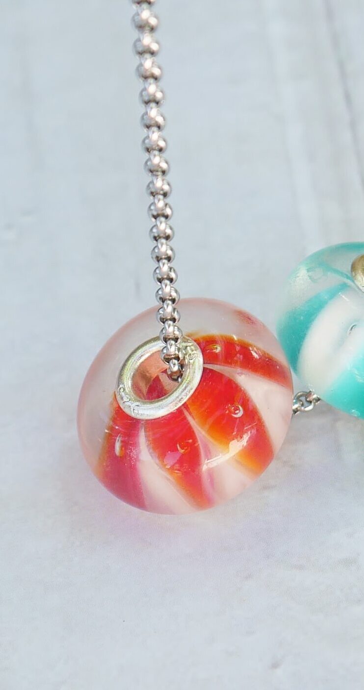 Les perles sont filées dans la flamme de mon chalumeau puis recuites au four professionnel pour lui assurer solidité et longévité.